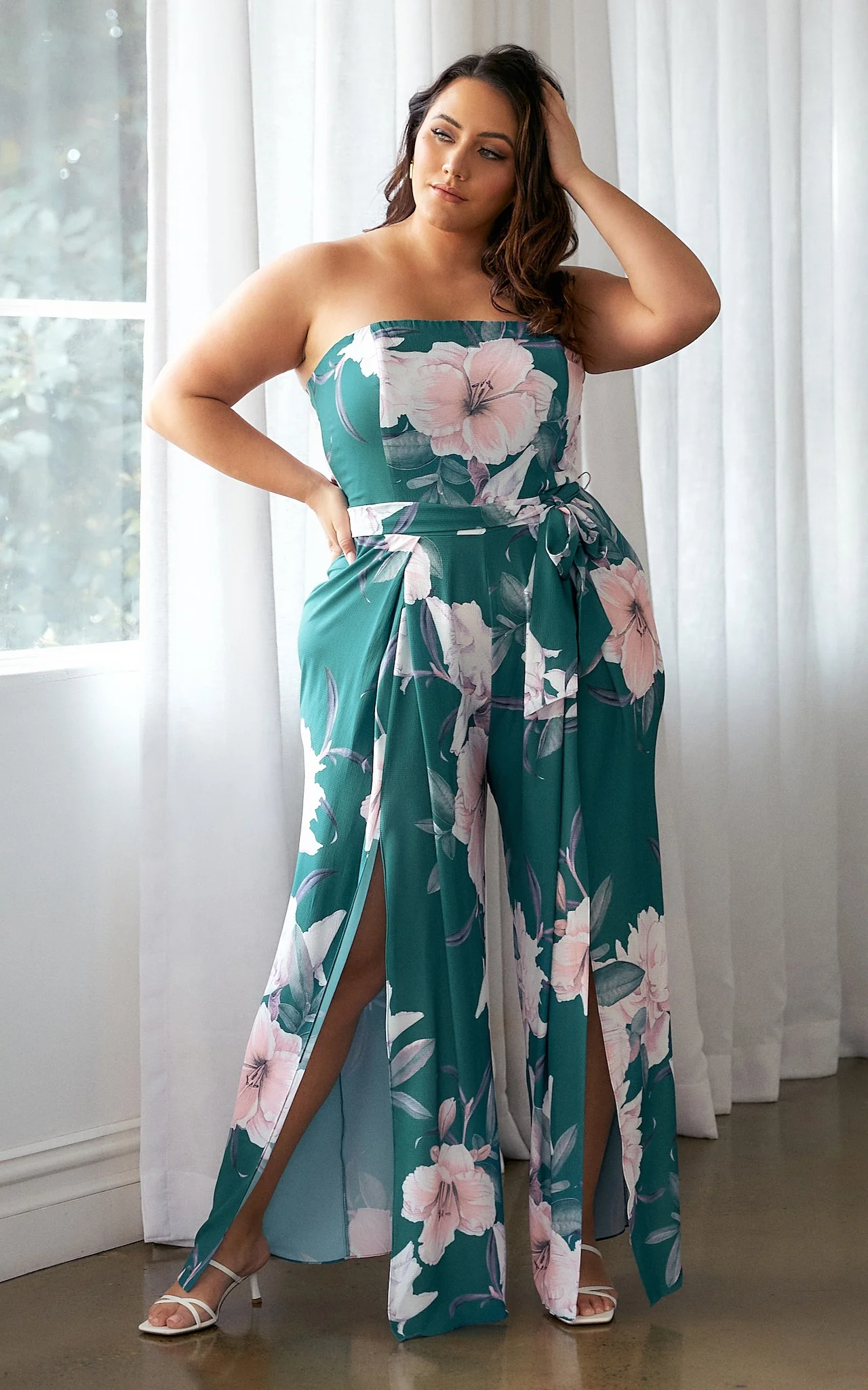 Lagoon Split Detail Jumpsuit - Green Floral