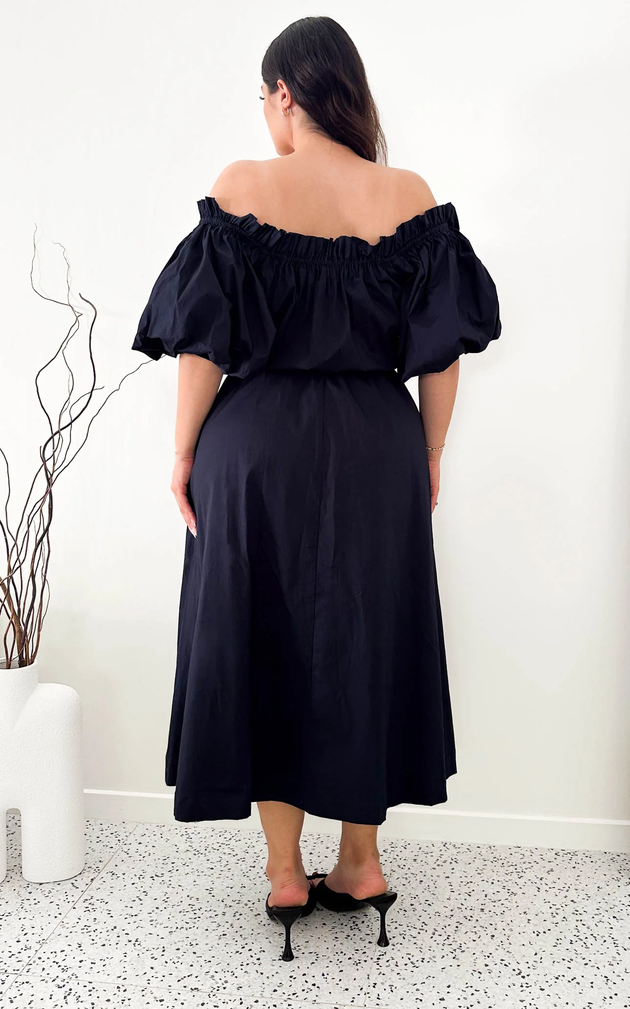 – Elastic off shoulder neckline with frill detail