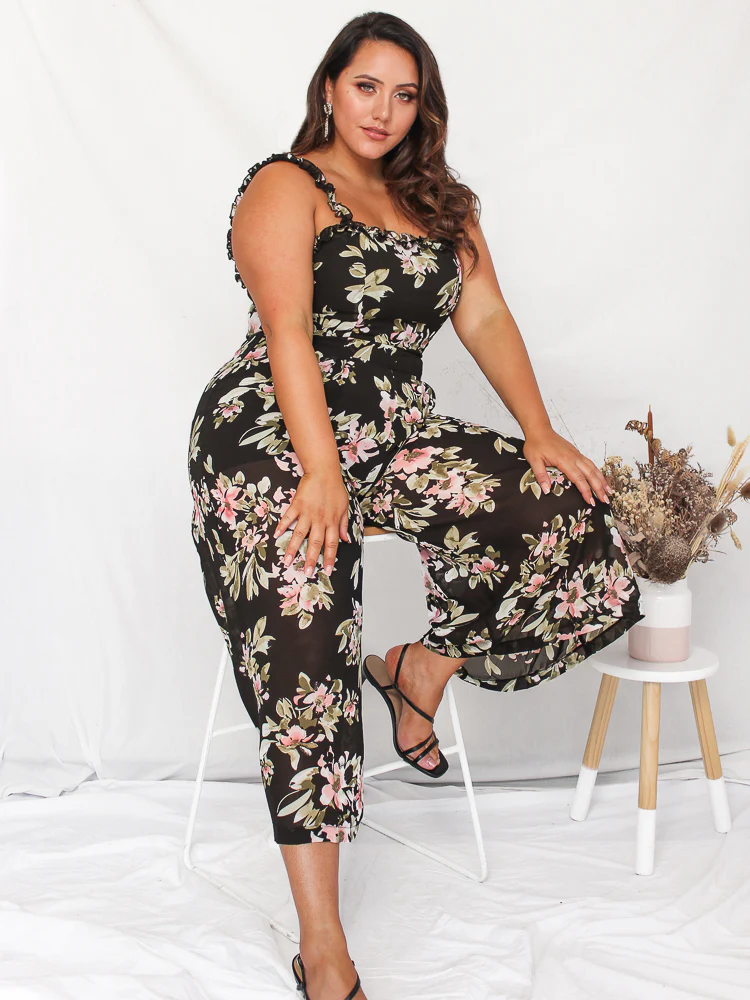 You must be a piece of art. Because you are a masterpiece! The Wynwood Jumpsuit will make you feel like you stepped out of a famous artwork with this amazing exclusive to Dee’s only black floral print. Featuring a fitted and lined bodice with boning underneath, wide leg silhouette and ruffle frill detailing along the straight neckline and fixed straps. You are one step ahead of the fashion game when you wear the Wynwood.