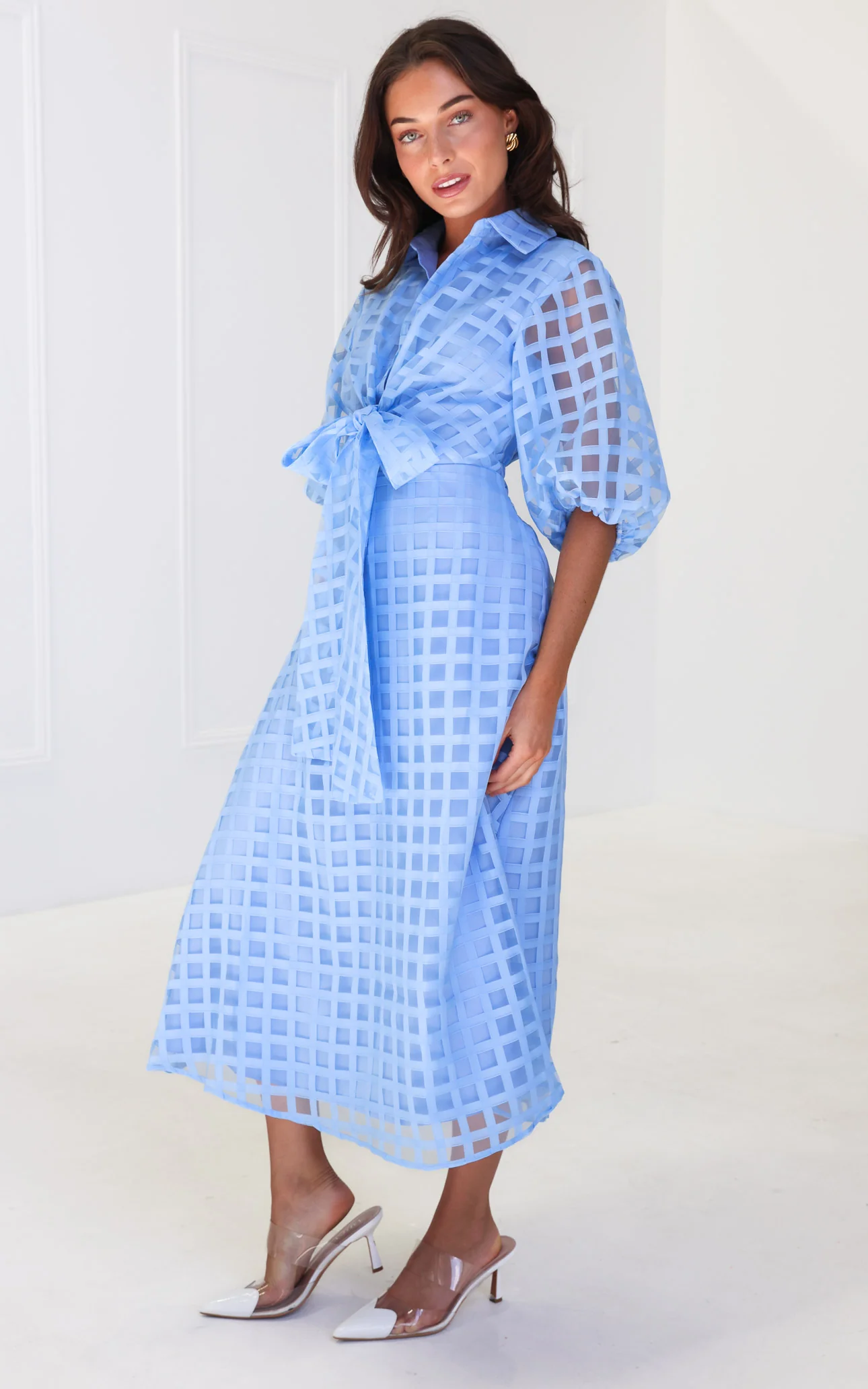 – Colour: light blue checkered organza (print placement may vary with each piece)